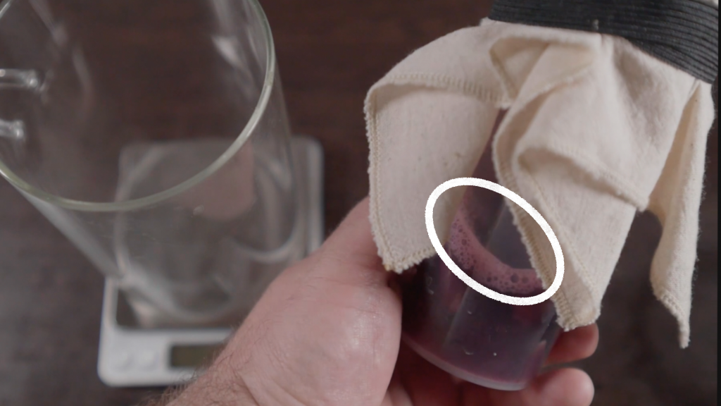 Виноград растолочь затем добавить воду и оставить в условиях цеха на 48 часов, до того момента как забродит. Запах приятный сладковатый, есть звуки газации. Признаки брожения на фото: